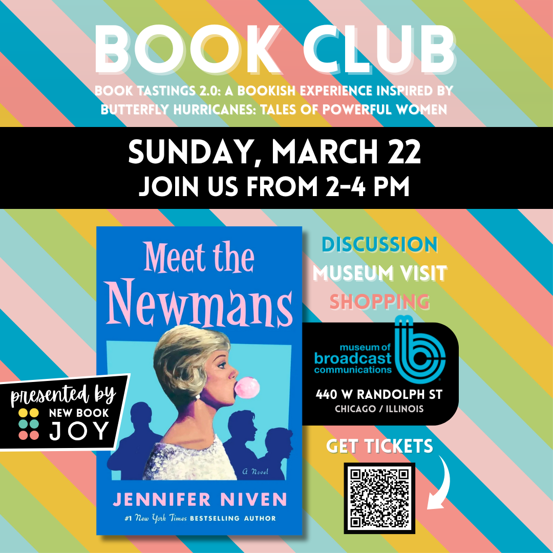 Join us for an in-person Book Club Discussion & Themed Experience on Sunday, March 22nd from 2-4 pm at the Museum of Broadcast Communications in Chicago or Tuesday, April 14th from 6-8 pm at Frunchroom Collective in Libertyville!